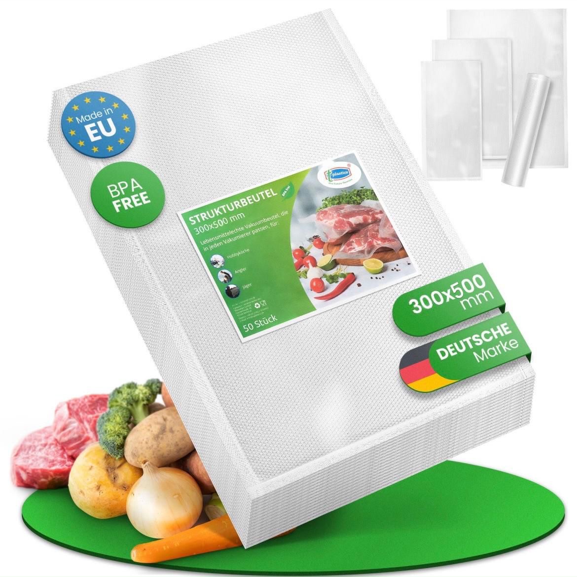 - Top-Qualität: Unser Material ist 100% frei von Weichmacher (BPA frei) sowie sehr stark und reißfest. Somit wird das Durchstoßen mit spitzen Gegenständen, wie z.B. Knochen oder Gräten verhindert. Zudem sind unsere Strukturbeutel natürlich 100% lebensmittelecht. Damit die Luft aus dem Beutelinneren sicher und zuverlässig abgesaugt werden kann, haben unsere Strukturbeutel viele Luftkanäle auf der einen Seite der Folie. Diese Kanäle sorgen für ein optimales Vakuum im Beutel. Die zweite Folienseite ist durchsichtig und bietet einen optimalen Blick auf Ihre vakuumierten Produkte.